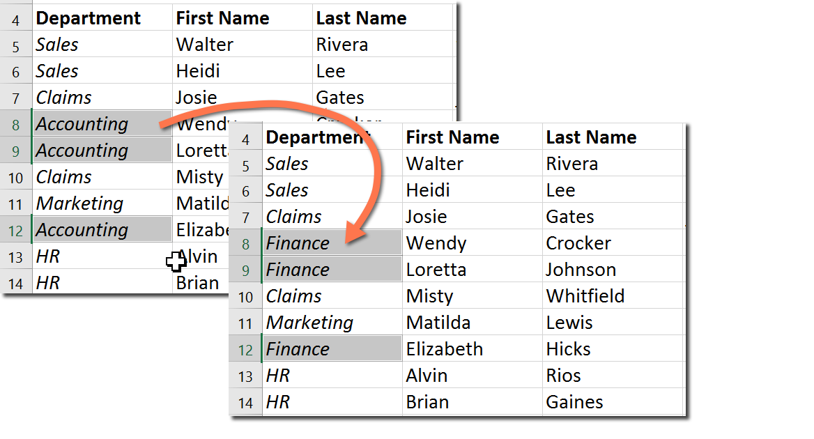 Search for specific data and quickly correct or replace repeated content throughout a worksheet or workbook.
