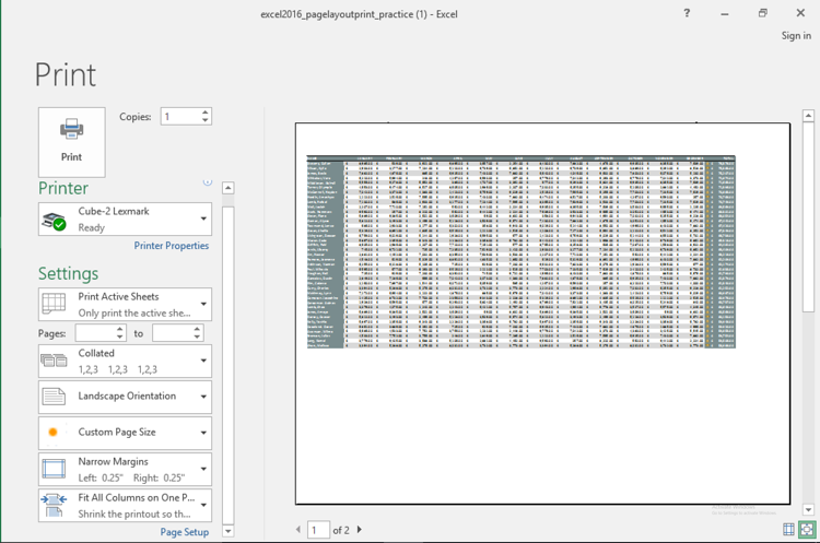 - Use Fit All Columns on One Page.