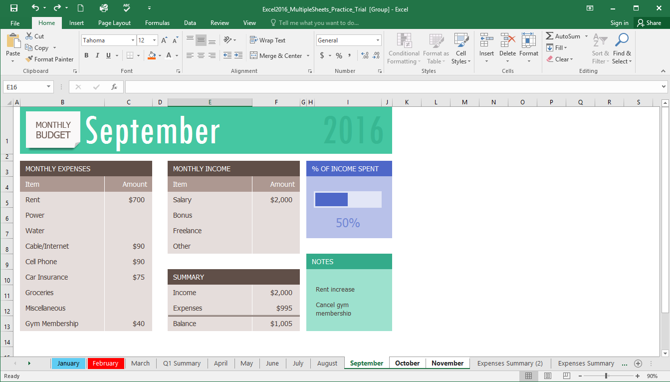 - Create a copy of the Expenses Summary worksheet using Move or Copy.