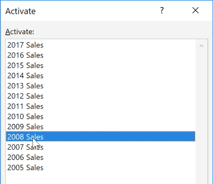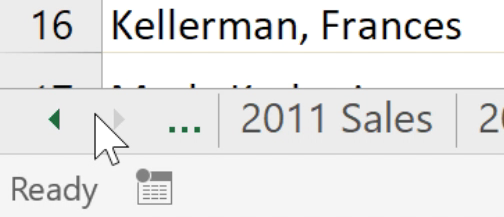You can click worksheet tabs to switch between sheets. For large workbooks, right-click the scroll arrows in the lower-left corner to see a list of all worksheets.