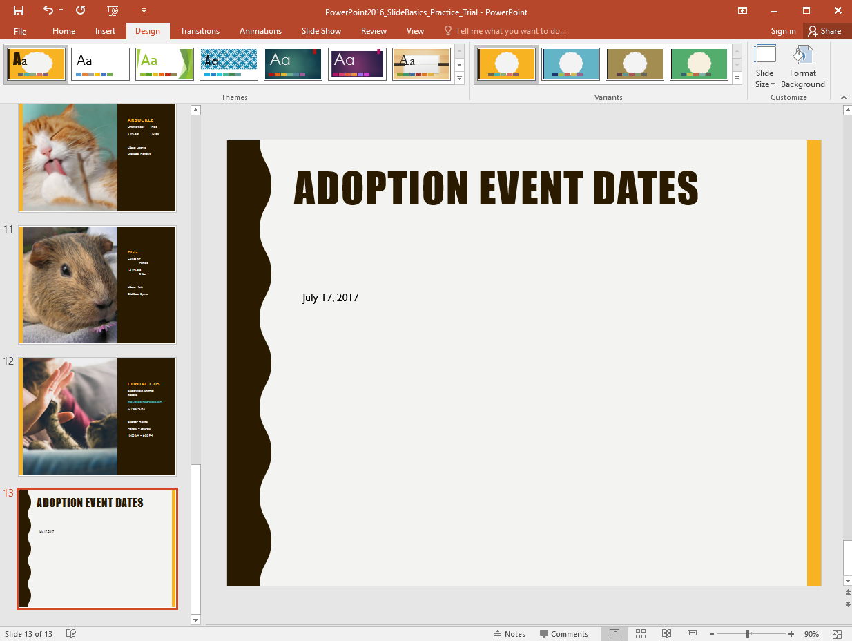 The completed practice file gives a good example of how a simple presentation can become much more visually effective once these slide basics are applied.