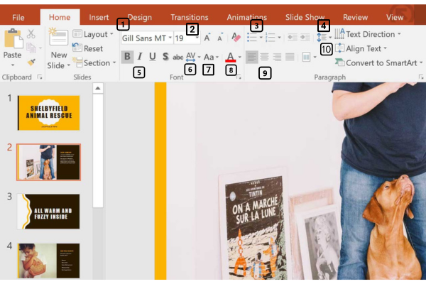 The Home tab contains several tools for formatting text, including options for font style, font size, color, and alignment.