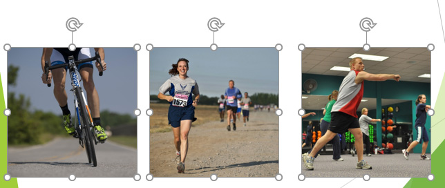 - Hold down the Shift key and select all three food pictures. Make sure you do not select the green diamonds.