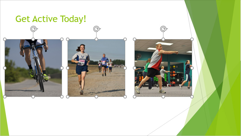 In addition to aligning and ordering objects, PowerPoint also allows you to rotate them. Rotation is useful when an image or shape needs to face a different direction or better match the design of the slide.