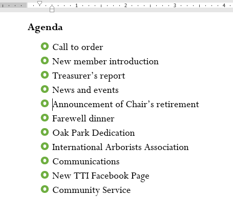Bulleted lists are useful when order does not matter. Select your text, then click the Bullets button in the Paragraph group on the Home tab.