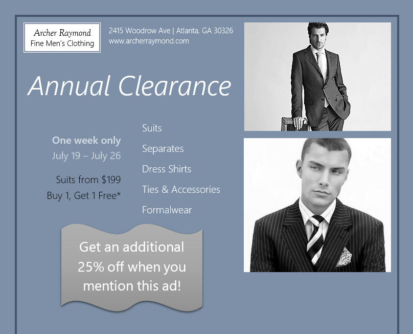 After inserting, styling, resizing, and changing shapes, your final promotional layout might look like this: